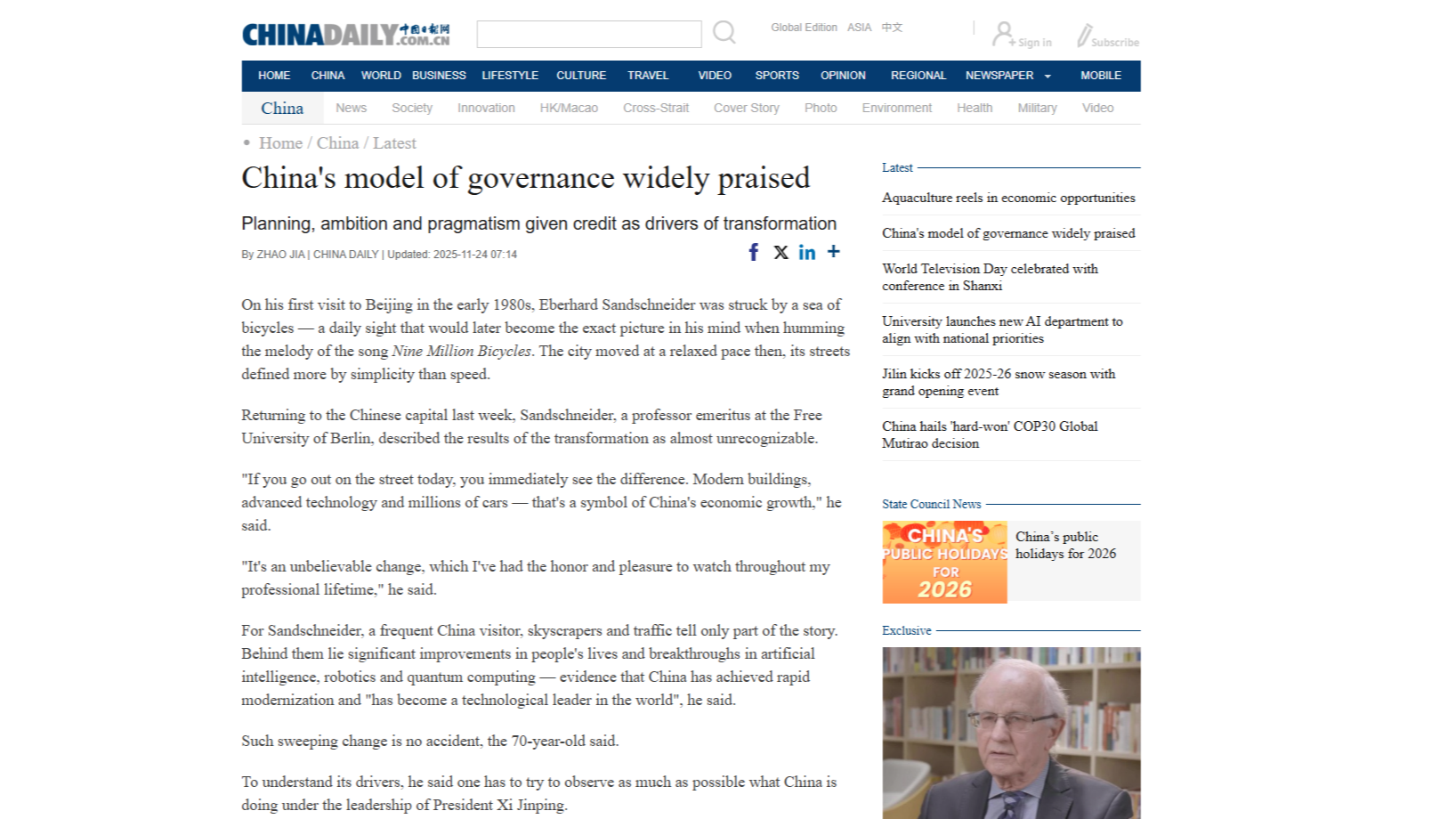 China's model of governance widely praised