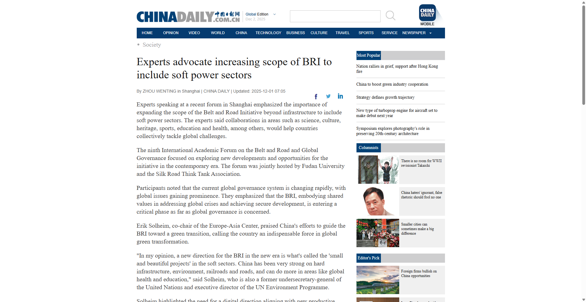 Experts advocate increasing scope of BRI to include soft power sectors