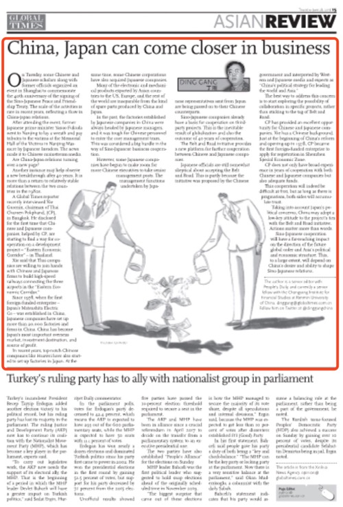 Sino-Japanese companies already have a basis for cooperation on third-party projects. This is the inevitable result of globalization and also the outcome of 40 years of cooperation.