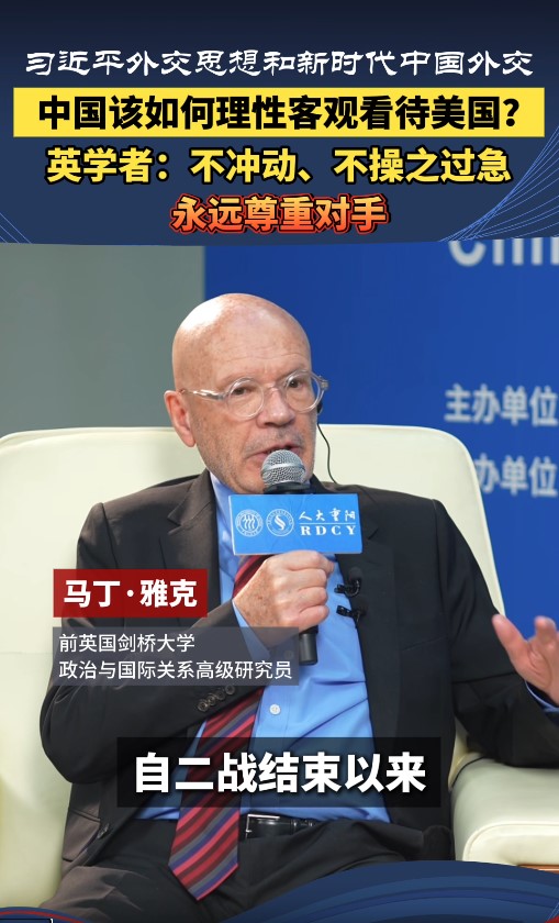 In a discussion with Professor Wang Wen, Professor Martin Jacques emphasized that China should continue to approach the United States with patience, avoiding impulsiveness or haste, while always maintaining respect for the other side.
