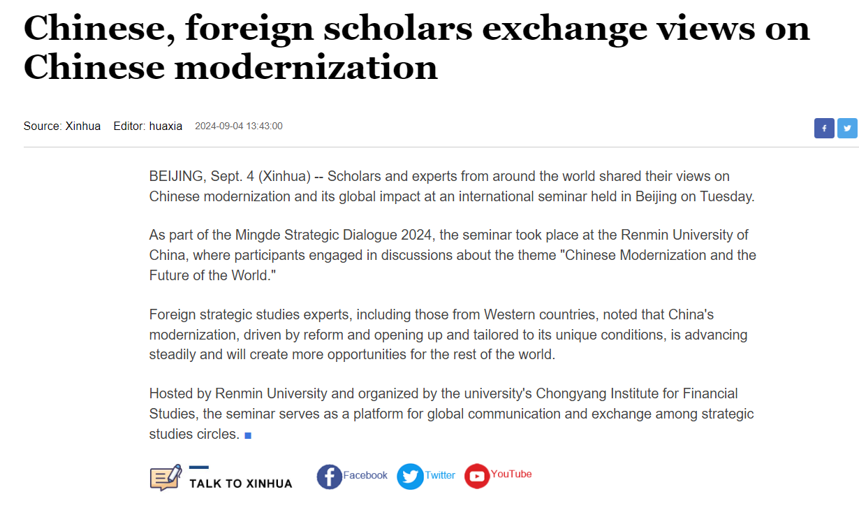 [Xinhua]: Chinese, foreign scholars exchange views on Chinese modernization