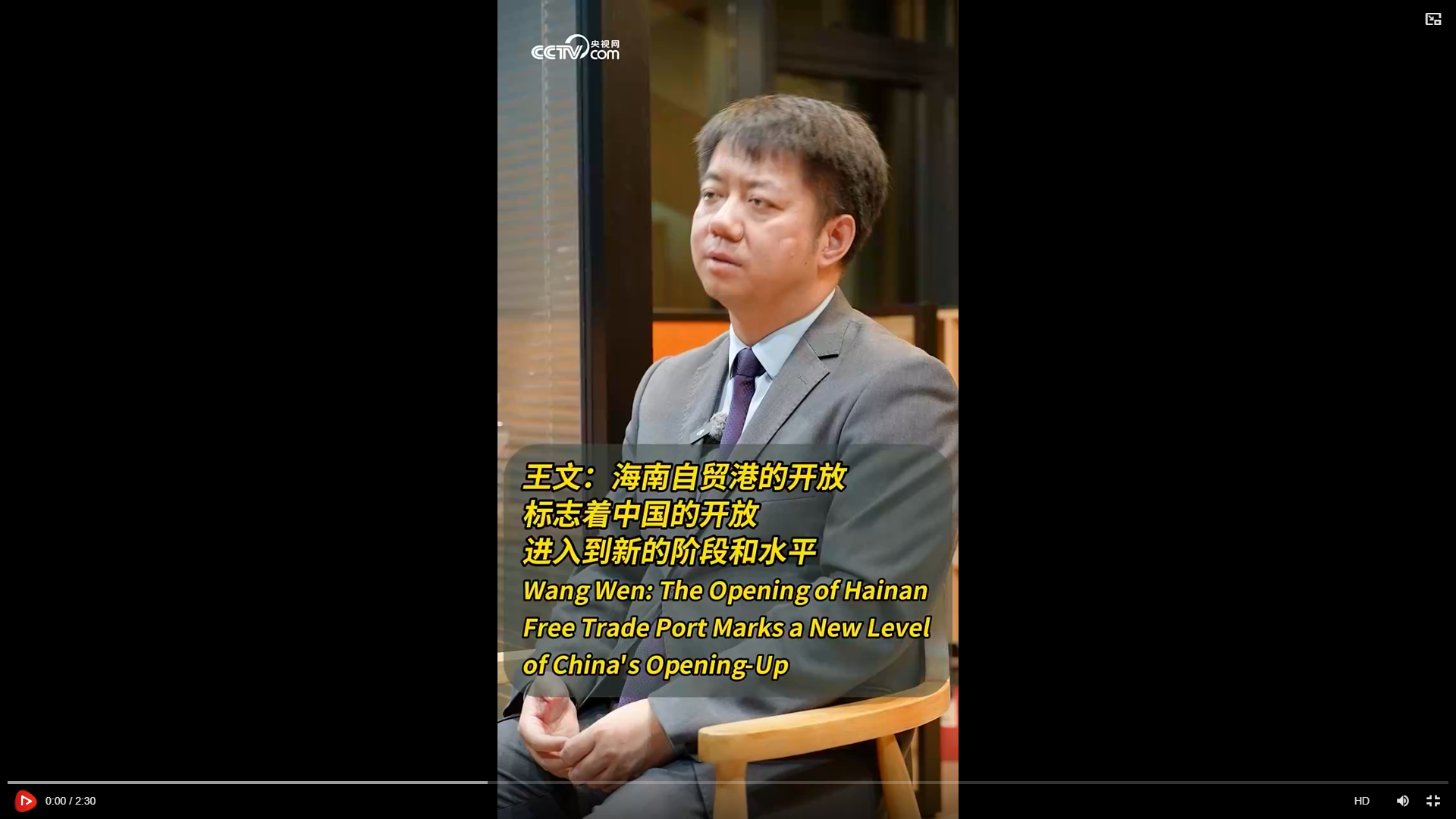 Wang Wen: The Opening of Hainan Free Trade Port Marks a New Level of China's Opening-Up