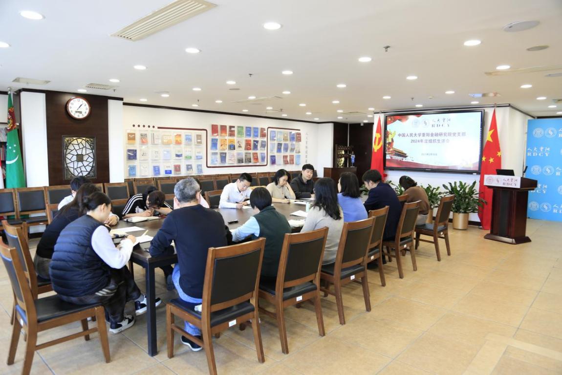 2025年2月19日,中国人民大学重阳金融研究院(人大重阳)党支部召开2024年度组织生活会。中国人民大学督导组康凤、李承璋老师参加指导,党支部全体党员参加会议。