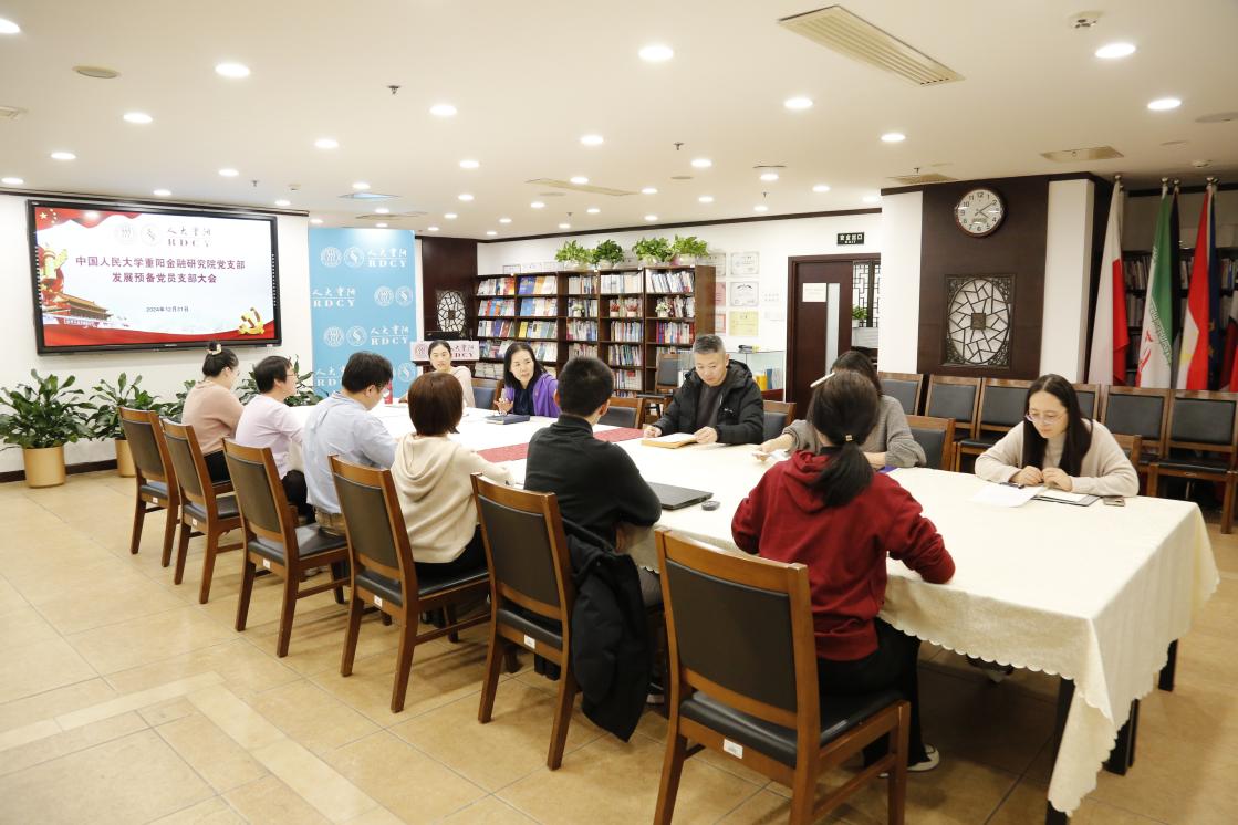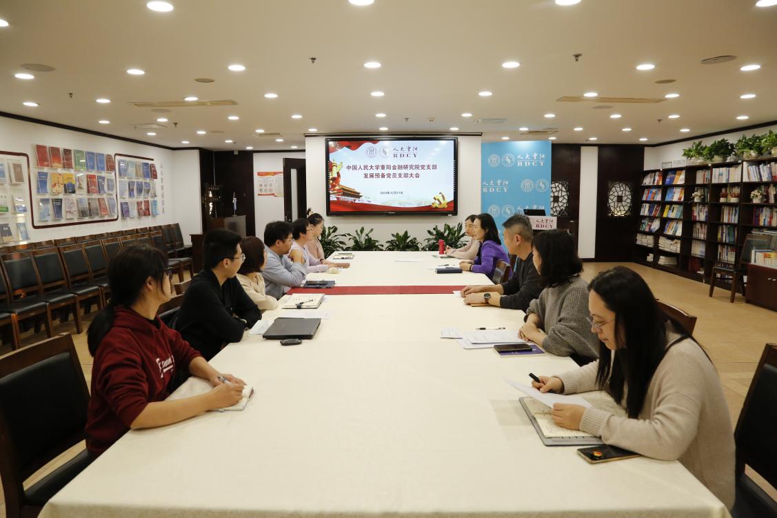 2024年12月31日,中国人民大学重阳金融研究院(人大重阳)党支部在文化大厦602会议室召开接收预备党员大会。会议由人大重阳党支部书记赵锦兰主持。
