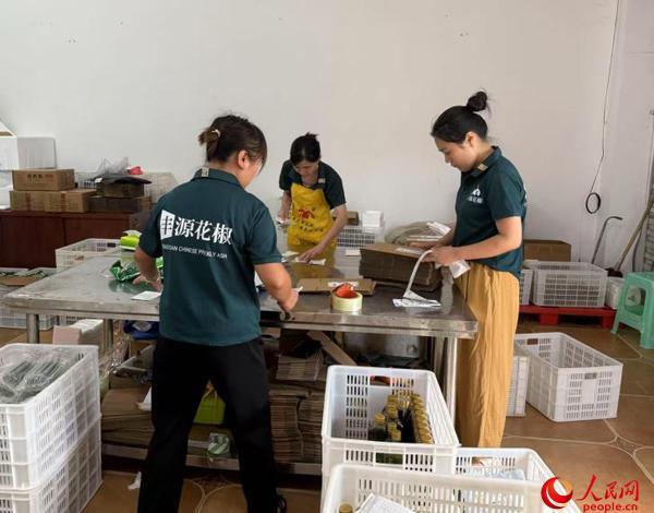 工作人员将花椒产品发往全国各地。人民网记者 杜燕飞摄