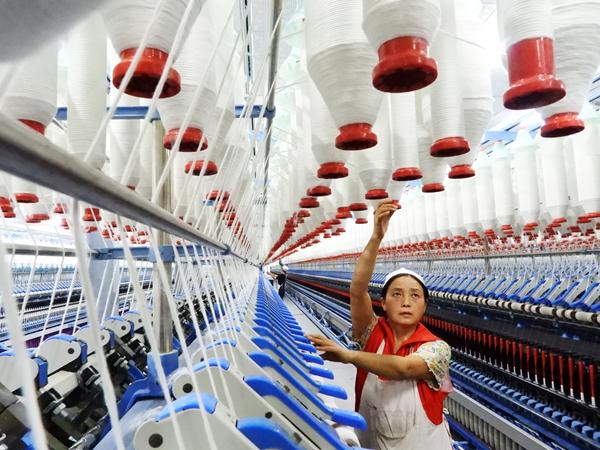 12月8日,四川达州,工人在高新区南国纺织印染车间赶制出口欧美国家的棉布订单。视觉中国供图