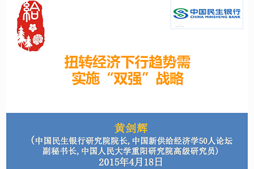 民生银行研究院院长黄剑辉认为扭转当下中国经济下行趋势,需要“双强”战略,即强有力的改革创新和强有力的财政货币政策。