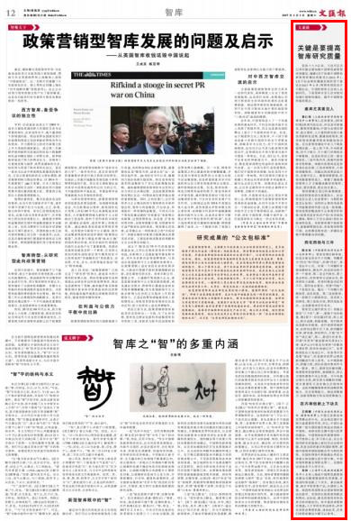 黄仁伟 (上海社会科学院智库研究中心理事长):在我看来,《环球时报》经常刊发社论、评论及学者建言,像智库型媒体;中国与全球化智库、盘古智库、人大重阳研究院大量发布新研究成果,像媒体型智库。更多的智库则兼具智库和媒体的功能。在当前智库建设中有几个现象值得注意,一是上热下冷。中央很重视,但不少地方、不少部门对智库还不够重视,还是沿用自己的一套决策体系。二是外热内冷。体制外的智库非常积极,体制内的智库还是按照老办法在做。三是库热智冷。大家纷纷建智库,但提出的成果还是少的,见物不见人。建智库需要钱,但智库最重要的是人,掌握了最高端的智库人才方能建成最好的智库。因此,要注重钱,更应该注重人。