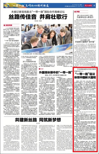 记者:作为中国历史上第一次自设议题,自主邀请在国内召开的全球峰会,您觉得“一带一路”为什么会受到国际社会如此热烈的欢迎?