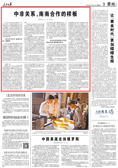 中国一直以来高度重视发展同非洲国家的关系。中非长期友好,命运休戚与共。双方是发展道路上的真诚伙伴,是国际事务中的天然同盟军。无论国际风云如何变幻,无论中国发展到哪一步,中国始终同非洲等广大发展中国家站在一起,永远做非洲的真诚朋友和可靠伙伴。中国政府非洲事务特别代表许镜湖在接受本报记者采访时表示,2013年,习近平主席提出真实亲诚的对非政策理念和正确义利观,受到非洲国家热烈欢迎。近年来,这一理念已经上升为中国加强同发展中国家团结合作的总体指导原则。中非关系已经成为中国同发展中国家团结合作的典范、南南合作的样板。