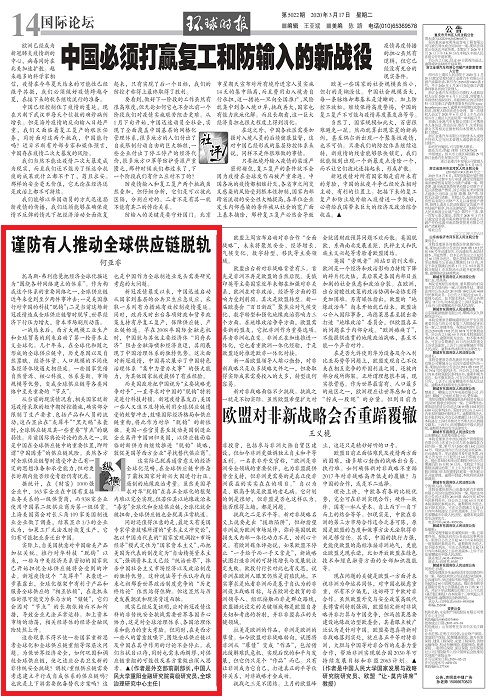现实已经反复证明,应对新冠疫情这样的非传统安全挑战需要世界各国齐心协力,这是对全球治理体系、各国治理体系和能力的重大考验。但同时,在美西方一些人的蓄意鼓噪下,围绕全球供应链以及中国在其中作用的讨论不会停止。我们当拭目以待,同时也需未雨绸缪,对供应链重组的可能性及其方案做出深入思考。(欢迎关注人大重阳新浪微博:@人大重阳,微信公众号:rdcy2013)