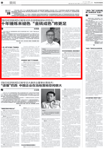 在金砖国家走过第一个十年这一承前启后、继往开来的关键节点,在金砖国家新的“金色十年”航程徐徐开启之际,《每日经济新闻》记者在金砖国家领导人第九次会晤举行期间多方采访外交家、企业家等,畅谈金砖合作机制对未来世界经济将产生的影响,并带读者一同领略下一个“金色十年”的美好前景。