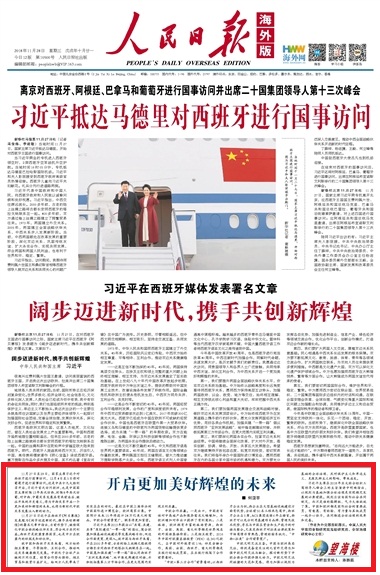 11月27日至29日,国家主席习近平对西班牙进行国事访问,12月4日至5日将对葡萄牙进行国事访问。这是中共十九大胜利召开后,习近平首次访问欧洲,也是中国国家主席时隔13年再次访西,时隔8年再次访葡,对中西、中葡关系发展具有承前启后、继往开来的历史意义,将为中西关系开启一个更加美好和辉煌的未来,也将为新时代中欧关系发展注入新的动力。