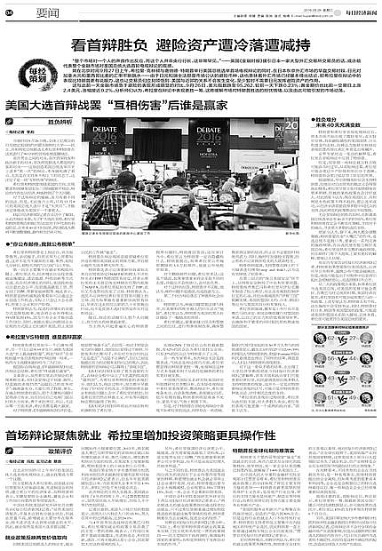 在北京时间昨日上午举行的美国总统大选首场电视辩论上,就业政策成为第一个议题。