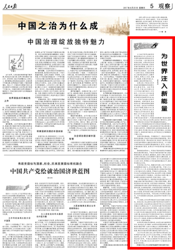 中国能够在世界乱局中保持前进方向不动摇、领导核心不动摇、共享发展不动摇、改革创新不动摇,正是中国治理卓有成效的体现。中国治理为中国带来发展红利。而中国亮眼的治理成绩,也使世界对中国寄予了更多期待。