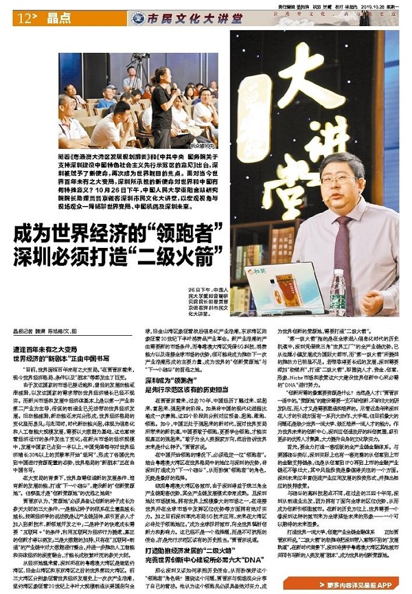 打造世界一流大学,创建产业全链金融体系……正如贾晋京所说,“二级火箭”的助推将把深圳带入意想不到的“发展轨道”,在新时代背景下,深圳将携手粤港澳大湾区其他城市共同书写新的人类发展“剧本”,成为世界的创新策源地。