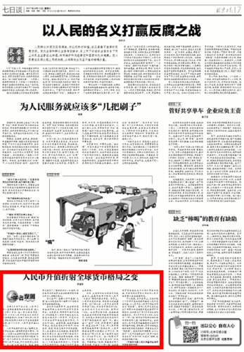 人民币快速升值引发一连串反应,其中也包括一些饶有深意的事件。例如,一位曾以成功预测美国次贷危机和欧洲债务危机成名的美国对冲基金“大鳄”,花了七年时间,押注约2.5亿美元等待人民币大跌,而今却输得土崩瓦解。此人在“大败”后直言:“现在,这世界已经变了。”意味深长的一句感慨,深刻表明当前世界正在出现某种影响巨大却为人忽略的变化。