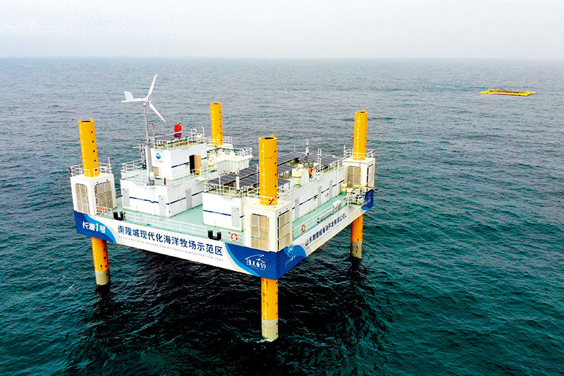 应用5G的山东长岛综合试验区南隍城国家级海洋牧场示范区海上平台(2020年8月8日摄 ) 王凯摄/本刊