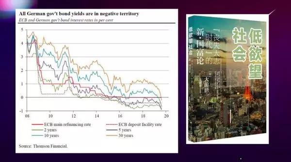 负利率影响人们生活的方方面面。日本长期以来处于负利率状况,《低欲望社会》中提到,人们普遍没有欲望,不想工作,不想消费,不想结婚,也不想买房子,什么都不想,就想宅,日本的宅文化就是这样产生的。为什么进入到低欲望社会的状态?在长年经济增长缓慢、人口老龄化、负利率的社会中,人力资源作为资产其价值非常昂贵,这就导致哪怕是一个刚生下来的小孩未来的预期估值也非常高,这种预期就必然产生大量的负债。进入社会后,社会各方面的压力也很大,各方面的消费都会增加新的负债,日本就是这样一个典型的社会。因为资产很稀缺,没有大量新的资产形成,既然没有大量新资产形成,货币将进一步贬值,所有新增加的消费就会增加很多新的负债,由于新的负债使得人们预期中对新的负债很害怕,这就变成了一个低欲望社会。低欲望社会拿什么来填充呢?比如日本的动漫、电子游戏产业很发达,这就和社会里面的钱与资产的关系发生了变化是有关系的。由于资产价格昂贵,房子也买不起,于是人们寻求更便宜的资产来满足欲望,比如电子游戏就可以满足。