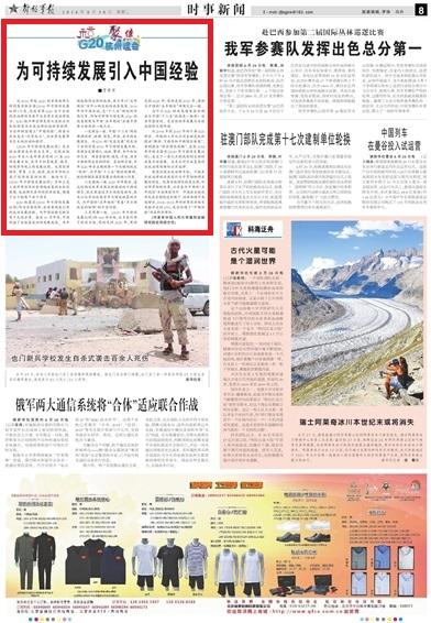 一是理念一致。中国“十三五”规划强调创新、协调、绿色、开放、共享的发展理念。而G20的“包容发展”则是为了共同实现2030年可持续发展目标,其理念是强调人、地球、繁荣、和平和伙伴关系。两者在协调、绿色、开放、共享方面的理念是相同的。在创新方面,今年G20峰会主题的第一个关键词就是“创新”,而中国“十三五”规划则强调,把创新摆在国家发展全局的核心位置。