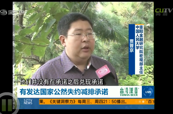 近日,中国人民大学重阳金融研究院宏观研究部主任贾晋京接受深圳卫视采访,针对气候问题发表观点。在谈到有发达国家公然失约减排承诺这一问题时,贾晋京指出西方国家往往是口惠而实不至,他们并没有在承诺之后兑现承诺,相反中国的承诺是每年公布兑现情况的。目前,中国已确立2020年减排目标,并且以往的绿色举措成效明显。