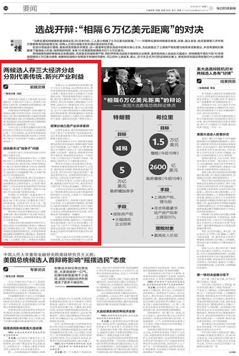 “而希拉里基本上比较少提过反倾销。她侧重在保护知识产权。希拉里背后主要代表了科技业和金融业。”贾晋京说。