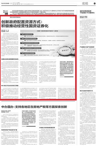 1月12日,国家发改委主任徐绍史在《人民日报》撰文也明确指出,创新政府配置资源方式,是使市场在资源配置中起决定性作用的必然要求,是更好发挥政府作用的有效途径,是推进供给侧结构性改革的重要举措。同时,《意见》提出创新经营性国有资产配置方式,以及鼓励开展改革探索等多方面亮点内容,对此,每经记者就如何推进国企混改、探索房地产税等问题采访了多位专家,看看他们是如何解读的。