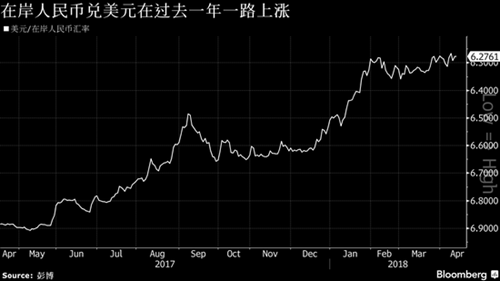与之相反的是,截至4月16日人民币夜盘交易结束,在岸和离岸人民币兑美元过去12个月中分别上涨近了10%,表现在亚洲货币榜上排名第三位。