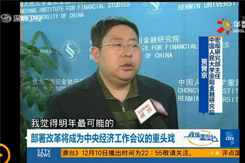 中央经济工作会议于周二召开,分析认为主动适应经济发展新常态,全面深化改革,落实一带一路等重大经济战略有望成为此次经济工作会议的亮点。 昨日,中国人民大学重阳金融研究院宏观研究部主任贾晋京接受深圳卫视采访,针对中央经济工作会议相关问题发表观点。