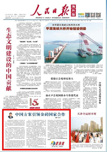 第二,以中国经验引领金砖国家合作,促进共同发展。金砖国家具有不同发展优势,制造业大国、市场大国、资源大国、现代服务业大国齐备,并且具有适合金融市场发展所需的时区互补特点,自身就能够形成一个完整的经济循环。当前,各国学习借鉴中国经验、探寻新型发展道路的声音越来越强,而金砖国家合作可以为中国经验提供一个宽广的平台,为新型全球化道路打造“样板间”。