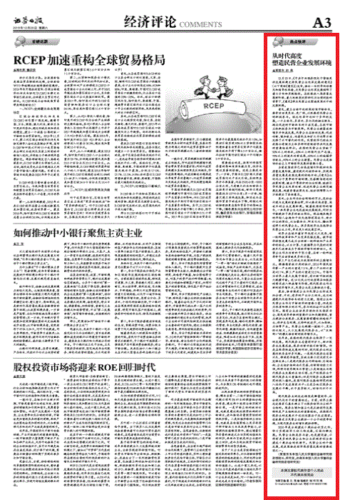 12月22日,《中共中央国务院关于营造更好发展环境支持民营企业改革发展的意见》(以下简称《意见》)发布,推出一系列导向性意见和指导性举措,为民营企业改革发展指明了着力方向和实践路径。在我国进入高质量发展新阶段、着力把制度优势转化为治理效能的背景下,《意见》将为民营企业塑造更高水平的发展环境。