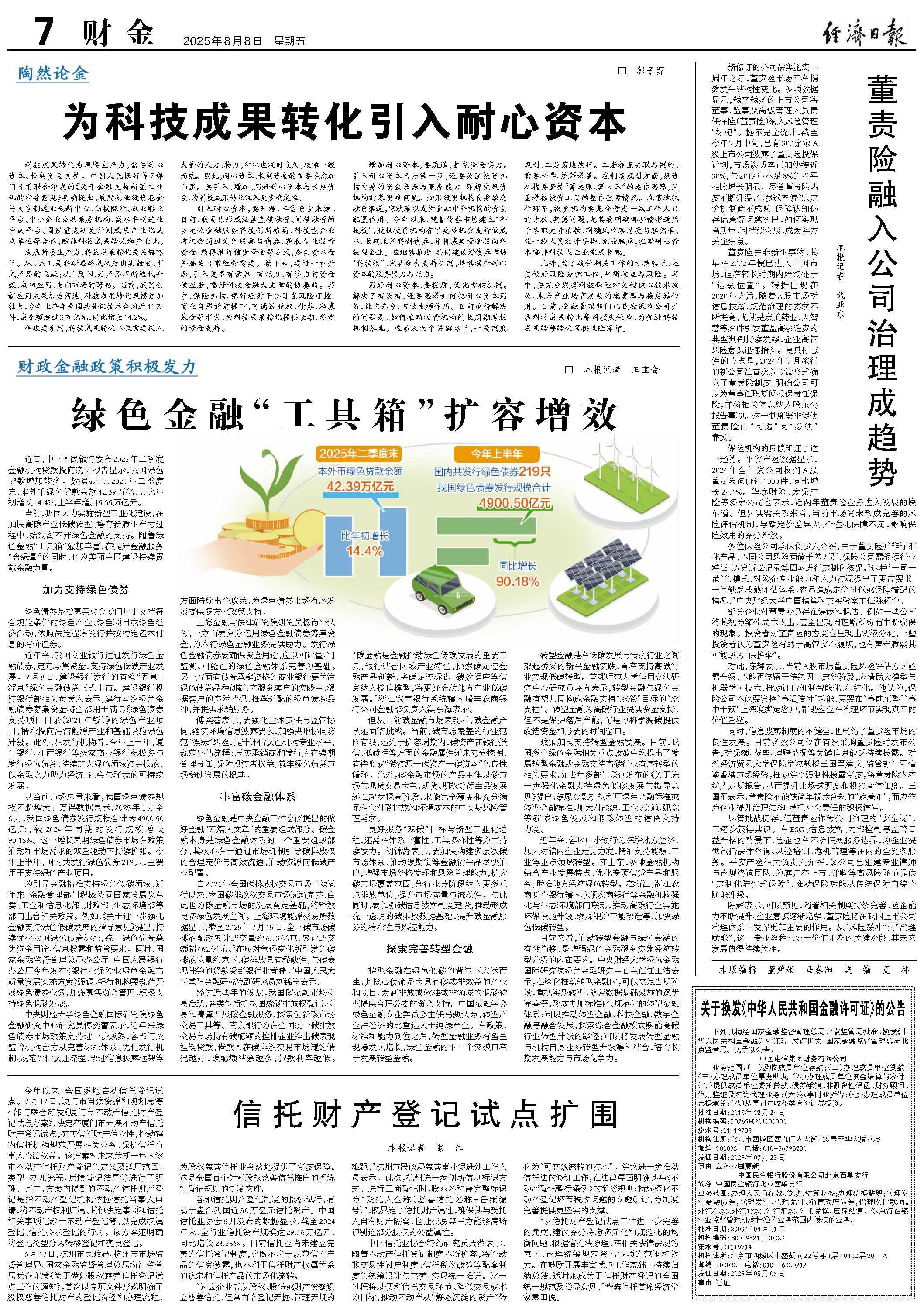 当前,我国大力实施新型工业化建设,在加快高碳产业低碳转型、培育新质生产力过程中,始终离不开绿色金融的支持。随着绿色金融“工具箱”愈加丰富,在提升金融服务“含绿量”的同时,也为美丽中国建设持续贡献金融力量。