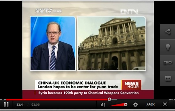 Mr. Ross: I think this summit represents a quite big change in economic policies by the UK government. Because when the present government came to office, they took a rather provocative attitude towards China, meeting the Dalai Lama and so on. This time, they are making real attempt to make good relation with China. This is not purely cosmetic moves. London is the most important center for foreign exchange dealing in the world. 63% of the RMB international exchanged outside Hong Kong and China already takes place in London. And that gives real concessions to China, particularly the proposal that Chinese banks should be operating their branches. That is Chinese banks that instead of purely subsidiaries but should get the opportunities to use that facilities and resources in China. So I think that is a very serious move by the British government.