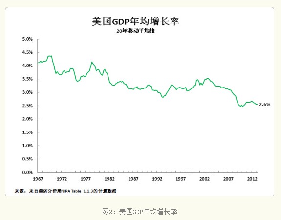 我认为IMF假定3.0%为美国经济未来4年的年均增长率太高,原因显而易见,图表2一目了然地显示:美国在过去20年内的年均增长率仅为2.6%。如果从更短的时间跨度来看,美国年增长率更低:其过去10年和过去5年的GDP年均增长率分别为1.8%和1.0%。从图表可以明显看出,美国经济增速呈逐步放缓的长期趋势。