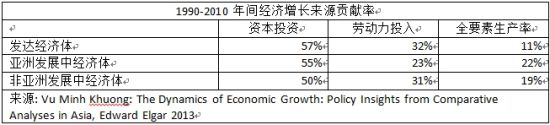 资本投资对最成功的发展中经济体——亚洲发展中经济体经济增长的贡献率为55%;