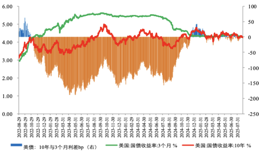 此次降息是预防式降息、更加是风险管理式降息(美联储主席鲍威尔的原话),一方面通胀黏性、就业疲软、经济不振是降息的主要原因,今年上半年美国经济仅增长1.5%,低于去年同期的2.5%。另一方面,更为关键的是美国长短期收益率近三年来多数时间是倒挂状态,这警示是了美国衰退和风险。