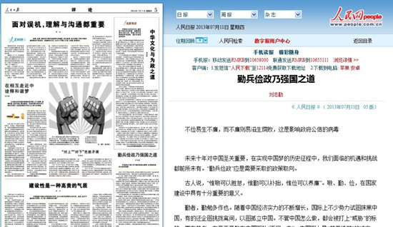 勤兵俭政,护国爱民。沿着这条道路坚定前行,中国梦的实现将无法阻挡。