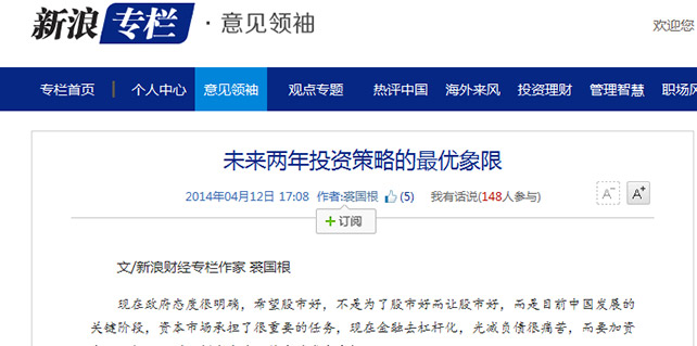 新浪专栏 裘国根 投资策略 最优象限 获奖