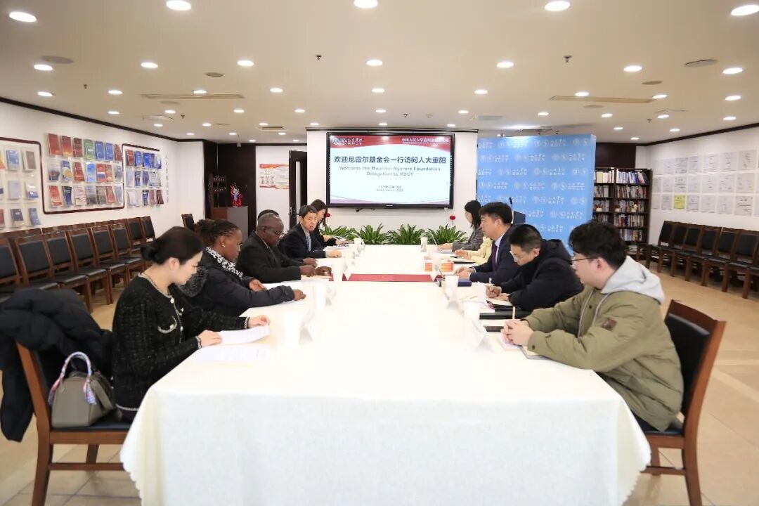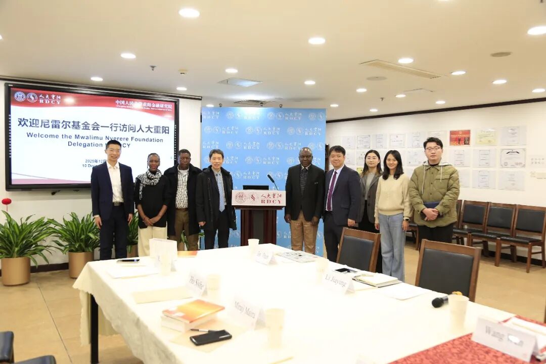人大重阳网讯:2025年12月10日,尼雷尔基金会代表团一行访问中国人民大学。其间,中国人民大学副校长郑新业会见代表团,就双方合作意向进行了交流。随后,代表团赴中国人民大学重阳金融研究院(人大重阳)开展访问。中国人民大学重阳金融研究院院长、全球领导力学院院长王文主持闭门座谈,双方围绕中坦友好关系及未来合作方向进行了深入探讨。