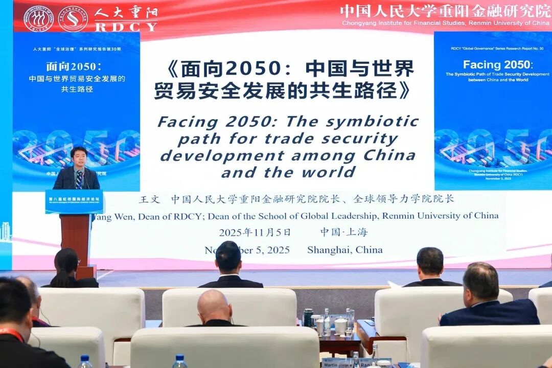 11月5日,第八届虹桥国际经济论坛在上海开幕,国务院总理李强出席会议。当天下午,由商务部主办,中国人民大学合办,中国人民大学重阳金融研究院(人大重阳)、全球领导力学院承办的第八届虹桥国际经济论坛“开放贸易与安全发展”分论坛成功举行。