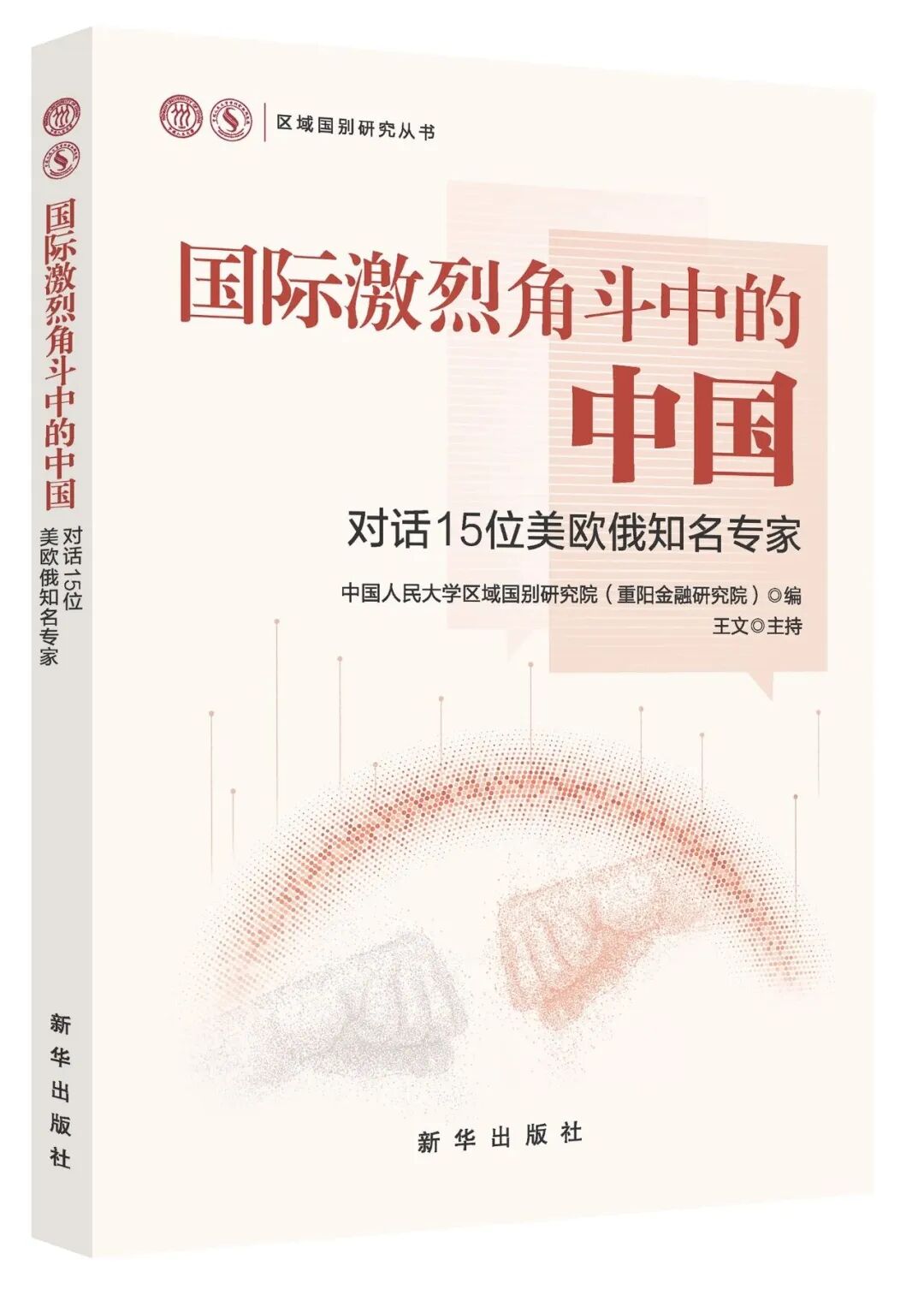 ▲《国际激烈角斗中的中国——对话15位美欧俄知名专家》,中国人民大学区域国别研究院(重阳金融研究院)编,中国人民大学重阳金融研究院、全球领导力学院王文主持,新华出版社出版