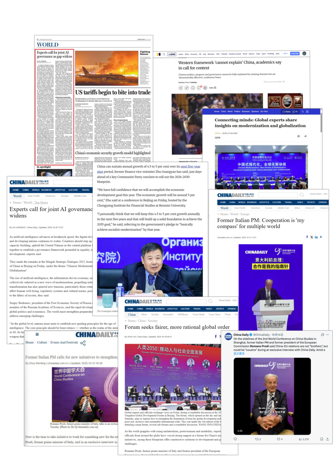 2025年10月,中国人民大学主办、中国人民大学重阳金融研究院与全球领导力学院承办“明德战略对话(2025)”。美、欧、俄等多国十余位战略学者走访上海、温州、北京,参与世界中国学大会、温商对话及人大主论坛,与中方官员、企业家和百余名师生就“中国发展给世界带来什么”展开多轮交流。央视、新华社、中国日报等40余家中外媒体全程跟踪,发布图文、视频、实录120余篇,微博话题阅读量2.7亿,TikTok、YouTube视频播放逾4200万,全球曝光超1亿人次。与会嘉宾直言美国“关税回旋镖”自损软实力,盛赞中国以更大开放驱动新一轮崛起,呼吁中欧携手重塑全球化。系列深度对话和短视频切片引发中外网友热议,相关互动超百万次。