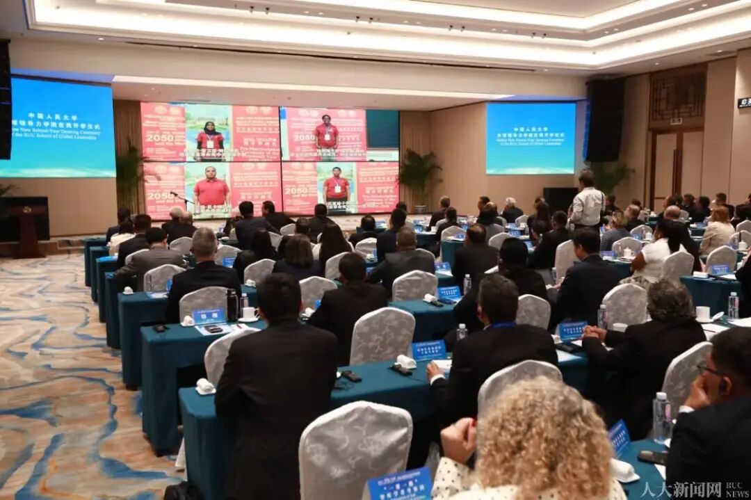 会上,中国人民大学全球领导力学院举行在线开学仪式。2024年11月,中国人民大学成立中国高校第一所全球领导力学院,致力于积极培养全球领袖型人才,壮大谋求人类进步、世界大同的战略力量,夯实融通中外文化、增进文明交流的战略基础。目前,学院“海外治国理政英杰班”已招收南部非洲六国的32位政党精英。