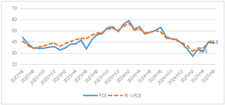 从当下的通胀来看,6月份PCE和核心PCE环比增幅均为0.3%,同比增幅分别为2.6%和2.8%。值得注意的是,在6月份的《经济预测摘要》中美联储上调了2025年全年PCE的中值,同比涨幅3.0%,较3月份的预测提高了0.3个百分点;失业率的预测从3月份的4.4%上调至6月份的4.5%。而GDP增速从3月份的1.7%较大幅度下调至1.4%。