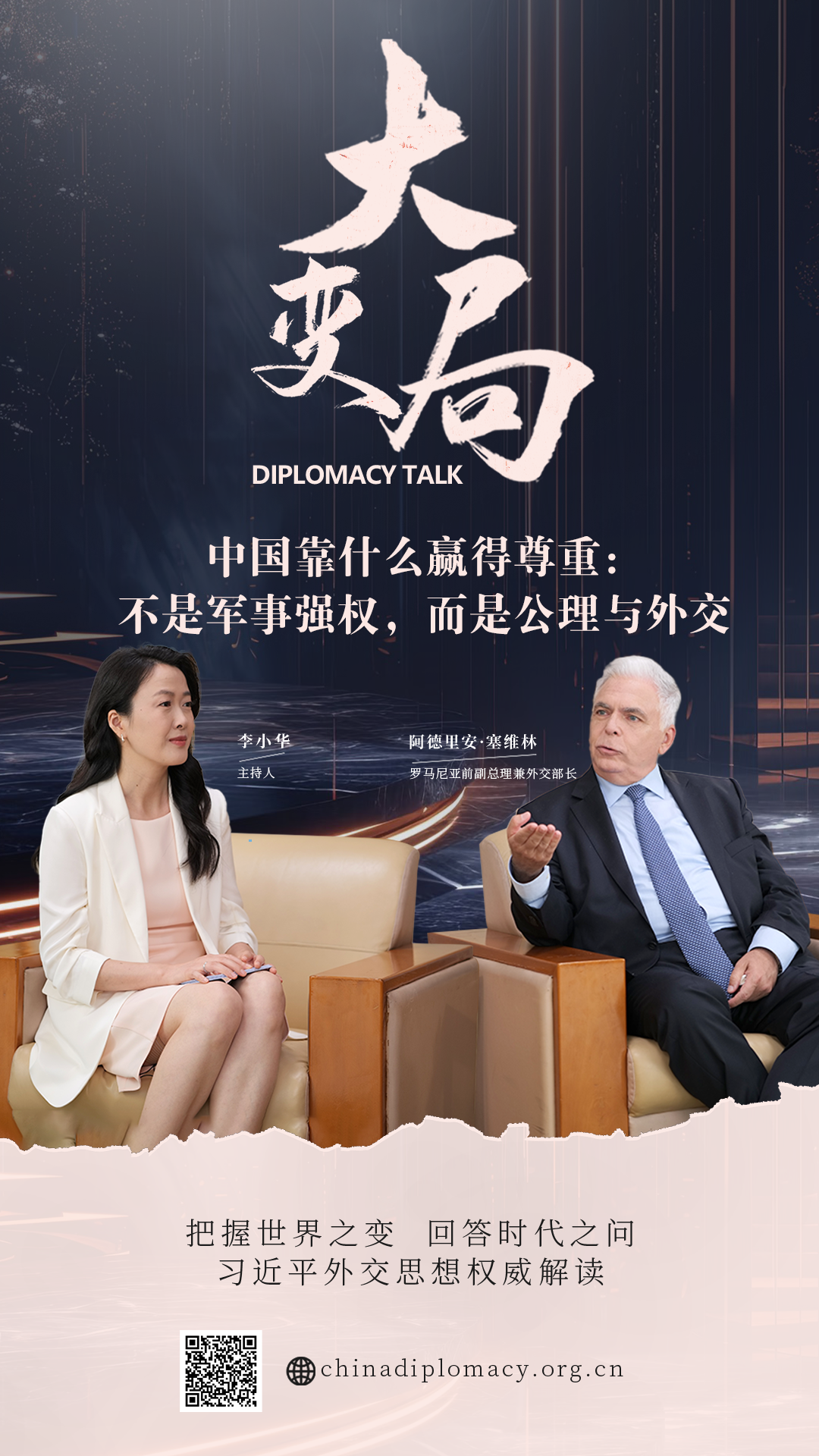 本期《大变局》节目专访罗马尼亚前副总理兼外交部长阿德里安•塞维林(Adrian Severin),深度探讨中国追求“公理之力、外交之力”所展现的全球意义及其对国际秩序重塑的深远影响。主要内容节选如下: