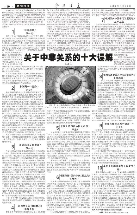 ▲《关于中非关系的十大误解》中英文版分别刊发在2018年8月20日《参考消息》、Global Times
