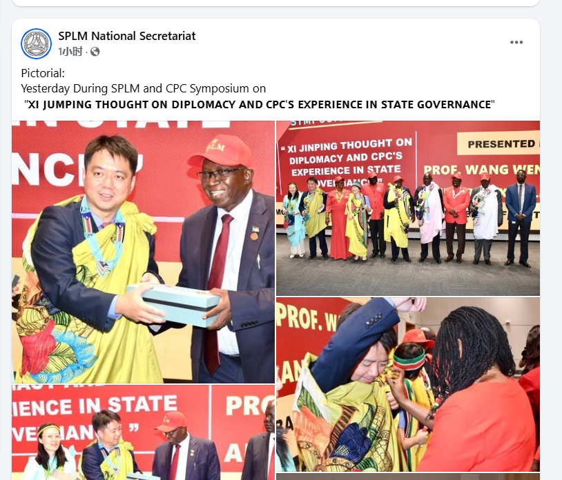 8月25日下午,南苏丹执政党苏丹人民解放运动(简称“苏人解”,SPLM)与中国驻南苏丹使馆合作举办了规模盛大的“习近平外交思想与中国共产党治国理政经验”研讨会,中国人民大学重阳金融研究院院长、全球领导力学院院长王文受邀做了主题为《大国复利:重估新时代中国发展与2035年展望》的演讲。