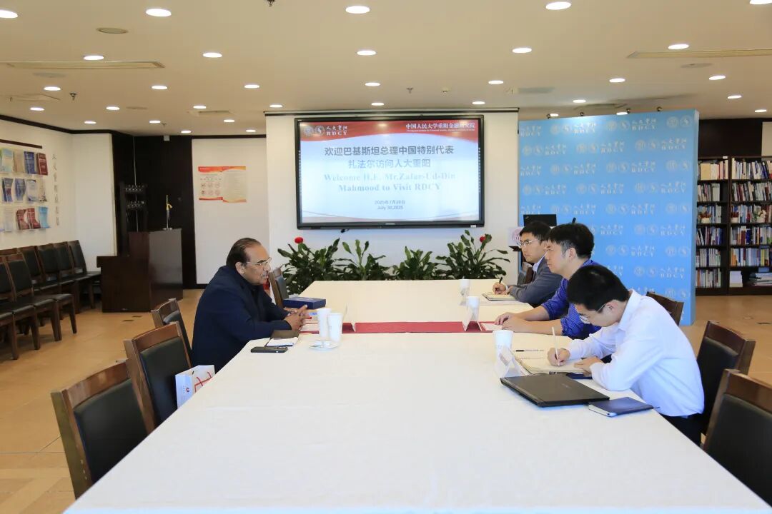 2025年7月30日,巴基斯坦前总理特别助理、巴基斯坦“读懂中国”论坛理事长扎法尔・乌丁・马赫默德(Zafar-Ud-Din Mahmood)到访中国人民大学重阳金融研究院(人大重阳)。