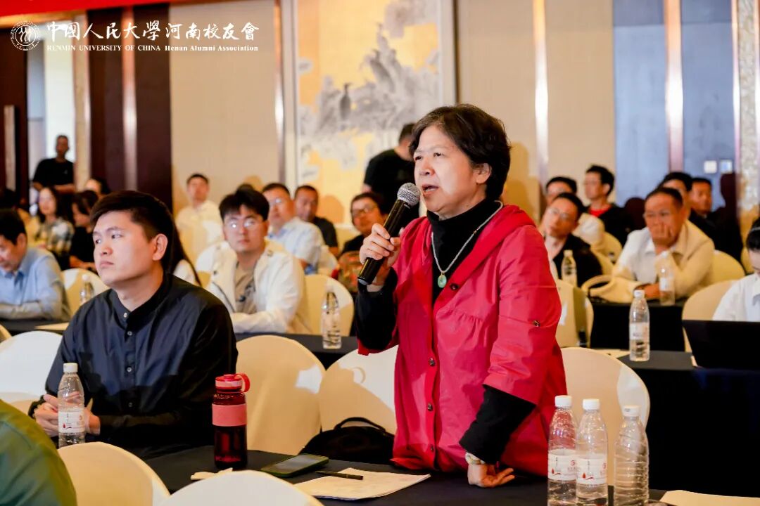 讲座的交流阶段,现场气氛热烈高涨,校友们争相举手提问。王文院长把个人命运与国家发展紧密联系,以一段精彩巧妙的叙事性回答,将个人发展、子女教育、跨境贸易、河南经济发展等看似分散的问题巧妙串联,展现出一位学者的思想深度与人文关怀。