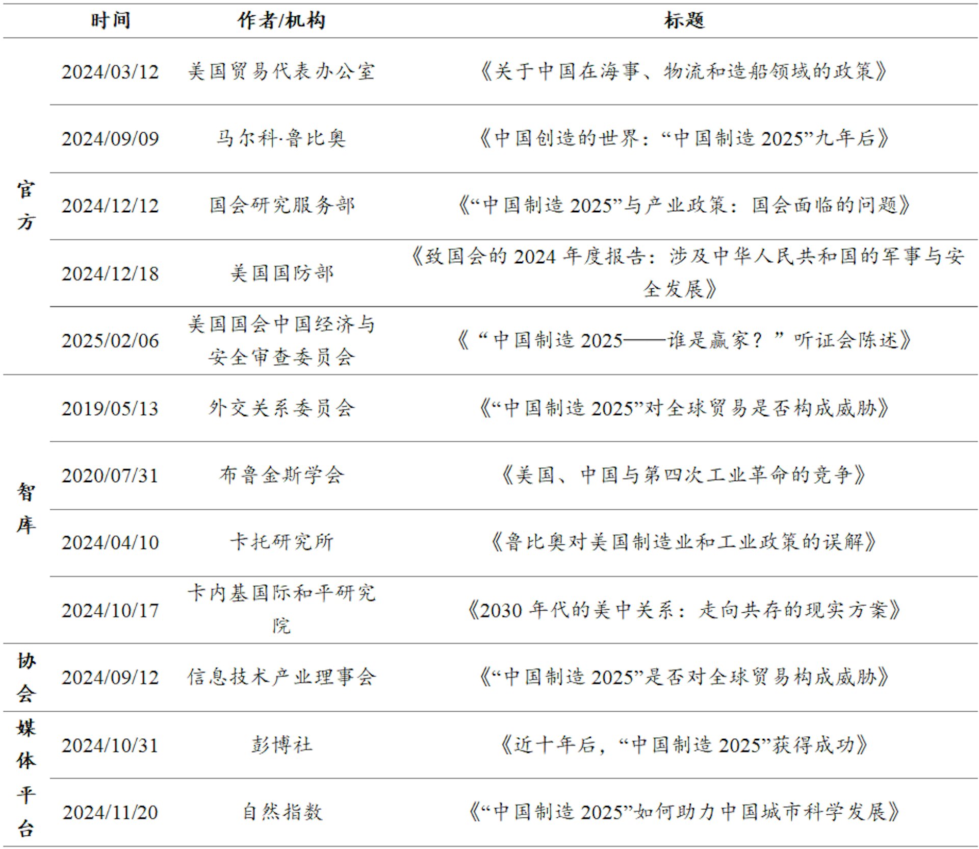 「中国制造2025」美国评估引用文献汇总。(人大重阳)